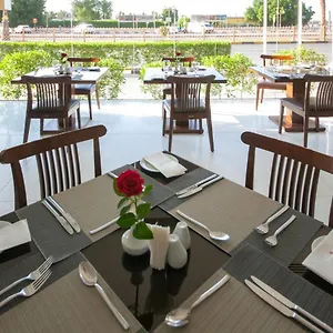 Indulge in a culinary journey at The Ramada By Wyndham Beach Hotel Ajman and experience the rich flavors of Middle Eastern cuisine. Start your day with a tempting and sumptuous buffet breakfast at Flavors Restaurant, located in the hotel's lobby. Authentic Indian, Arabic, Pakistani, Afghani, and Persian barbeque dishes are available at the Bar B' Q restaurant, where guests can witness the preparation and grilling process on a traditional charcoal in an open kitchen environment. Additional nearby dining options include Themar Al Bahar Restaurant, Pizza Hut, and King's Grill.